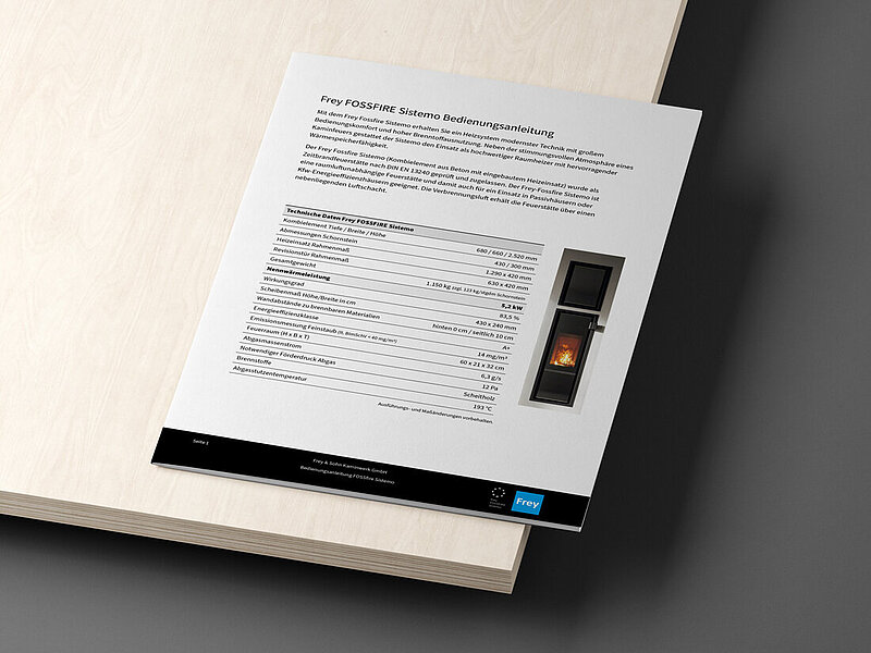 - Brandschutzradius beachten: Innerhalb von 1 m um die Feuerraumtür dürfen sich keine brennbaren Bauteile und Gegenstände befinden. Nicht-feuerfester Boden (bspw. Parkett) muss mit der Sistemo Glasvorlegeplatte (als Zubehör erhältlich) geschützt werden.